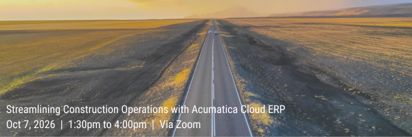 Join our upcoming webinar to discover how Acumatica Cloud ERP helps construction businesses streamline operations, improve project visibility, and manage financials more effectively.